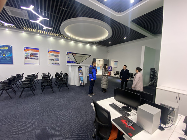 在浙江建设职业技术学院,受到了该校实训中心主任刘兵的热情接待。在刘兵的陪同下,郭伟刚一行参观了该校智慧建筑产教融合实践中心、VR创新人机交互实训室、鲁班博物馆、研创中心、体验中心等。双方就虚拟实训室建设规划、硬件建设、资源建设等内容进行深入交流,交换了意见,分享了经验。