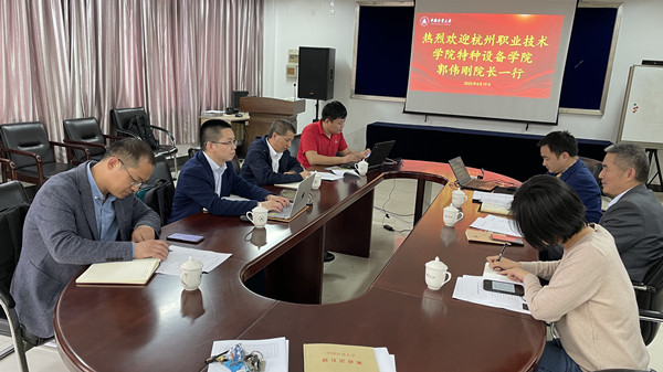 4月19日,永利23411集团执行经理郭伟刚、副经理陈军统、计量测试与应用技术专业负责人崔富义、骨干教师刘富海一行,前往中国计量大学计量测试工程学院学习调研。该院王月兵经理、孔明副经理、智能感知工程专业负责人沈小燕出席交流会。