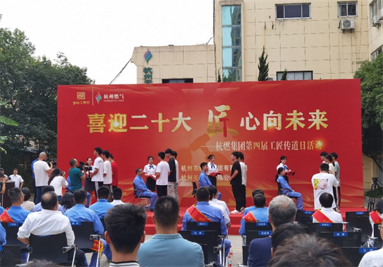 仪式活动中,浙江工匠沈卫国、董志明,浙江建设工匠占林峰、殷一珍和杭职特种燃气(能源产业)班员工师徒结对,行传统拜师礼,32名特种员工将在“现代学徒制培养”的学习模式中“学中做、做中学”,感受真实的企业环境和师父的悉心指导。