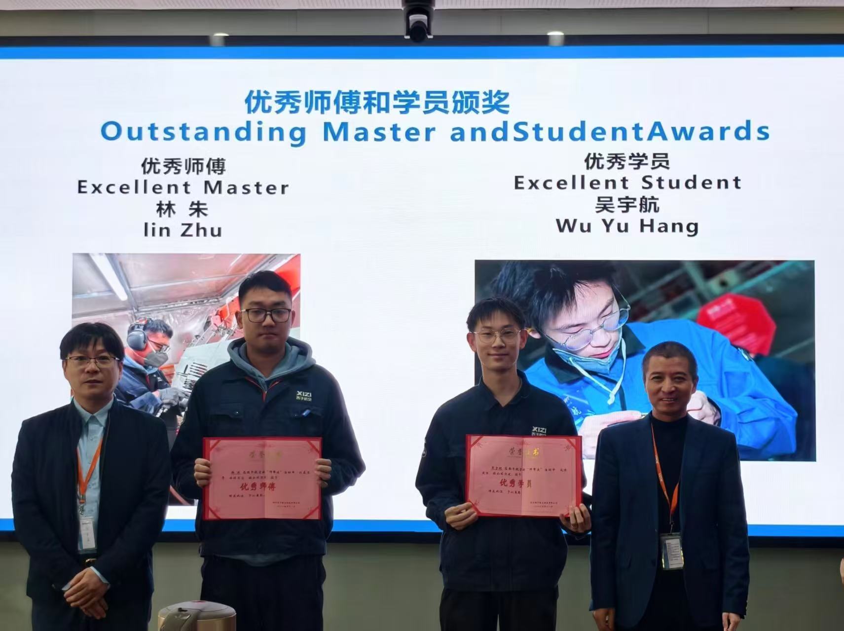 在优秀师傅和优秀学员颁奖环节,原机设1312班林朱,机设2212班吴宇航,凭借勤奋学习和在工作实践中的突出表现,分别被评为优秀师傅和优秀学员。两位的发言表达了对学校及企业培养的感激之情,并分享了自己在企业工作的成长与收获。