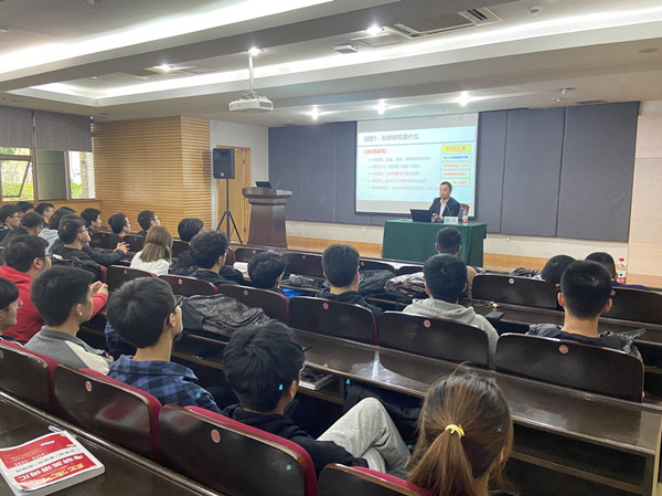 倪敬凭借自己在学界积累的经验和丰富的阅历,围绕科学研究是什么、科学研究的方法和走进科学研究等三个方面进行了讲解。他鼓励同学们重点培养六大能力,例如:学习能力、研究能力、表达能力等,重点介绍了机械工程科学的十二个方向:机构学与机器人学、驱动学与传动学、机械动力学、机械结构强度学、摩擦学与表面科学等。随后,倪教授语重心长地对本科班的员工们提出四点建议,希望同学们扩大知识面,提升专业技能,将自己所学专业和社会需求相结合,注重科研能力的培养,为以后的考研夯实基础。倪教授丰富的学识、扎实的科研能力和生动的讲解深深地折服了在场的每一位同学。