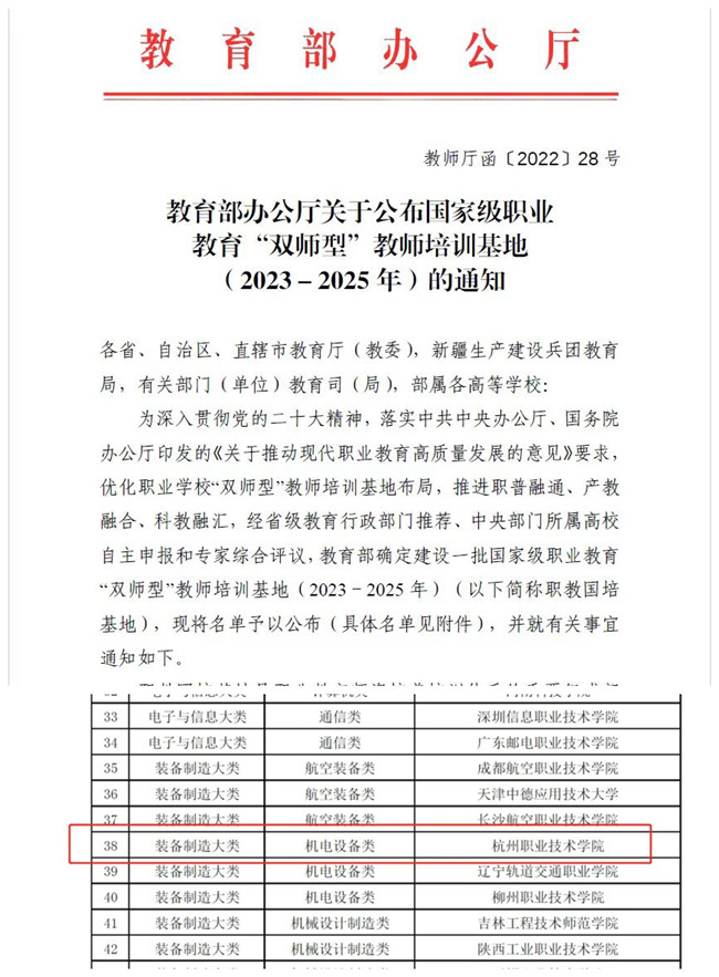近日,教育部办公厅公布了首批国家级职业教育“双师型”教师培训基地(2023-2025年)名单,公司成功获批全国首批“国家级职业教育‘双师型’教师培训基地(装备与制造大类-机电设备类)”。