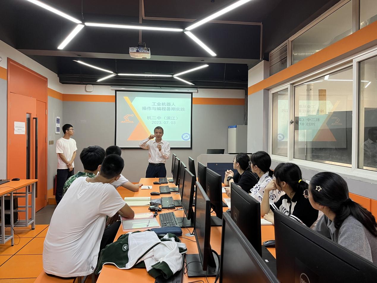 为深入贯彻落实党的二十大精神,提高“双高”院校的社会服务能力,7月3日至7日,永利23411集团工业机器人技术专业(第四党支部)开展了以“工业机器人编程与操作”为主题的高中生社会实践素养培训。培训在教育部工业机器人开放式公共实训基地举行,永利23411集团副经理、工业机器人技术专业负责人、永利23411集团第四党支部书记陈军统,专任教师赵龙云、汪林俊、黄一鸣、葛满,以及杭州第二中学(滨江)7名员工参加了本次培训。