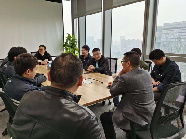 访企拓岗第三站——杭州本系机电工程有限公司。公司毕业生交流了在企业的工作内容,发展方向,公司总经理叶维斌对公司为中小微电梯企业提供人才表示感谢,并商谈了技能大师工作室相关事宜。