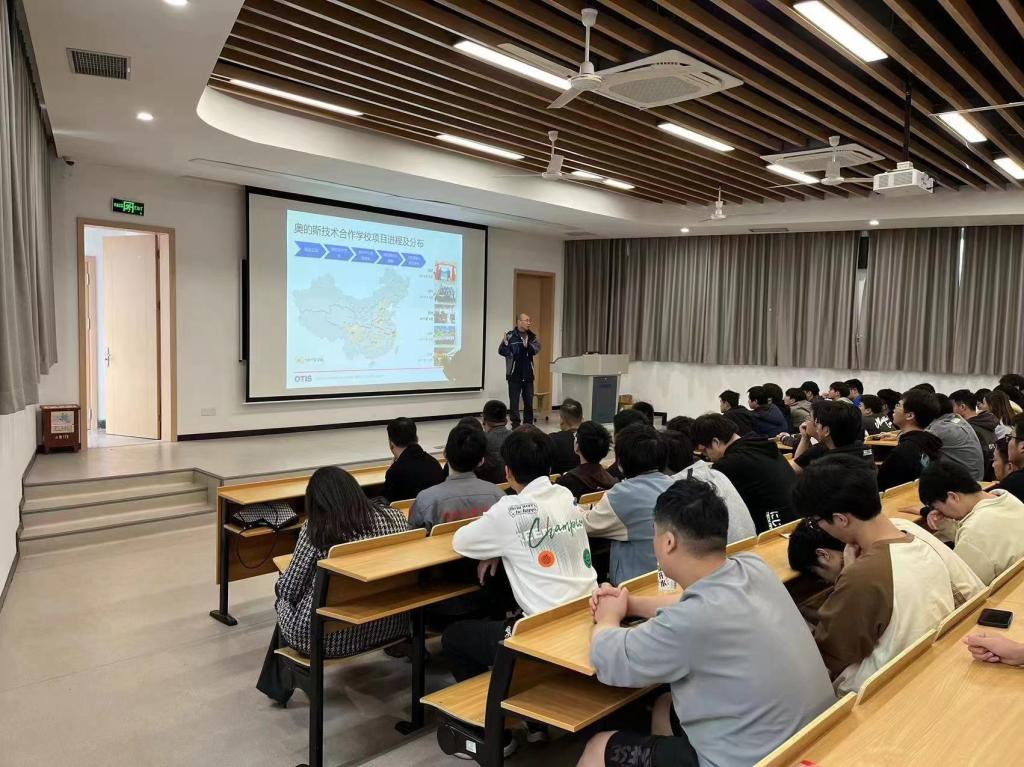 周浩涵经理从奥的斯电梯发展史、企业愿景、职业成长规划、就业的优势特色进行了详尽的介绍,并希望进一步深化合作,提升技能人才培养质量。