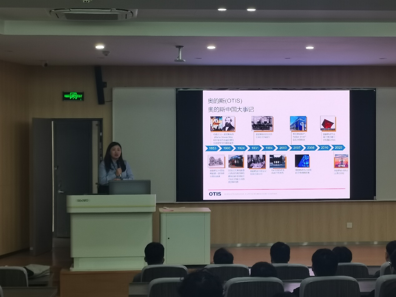 大区经理居娜女士向在座的师生展示了奥的斯电梯的发展历程、企业文化、薪酬福利、职业发展和学历提升这五个方面的内容,体现了企业的诚意和担当。已毕业的学长向大家描述了在奥的斯的工作、生活和自身的发展,让学弟和学妹更加明确了加入奥的斯电梯后的职业规划。