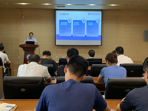 会上,公司党总支书记、执行经理郭伟刚传达了学校学习贯彻习近平新时代中国特色社会主义思想主题教育总结会议精神,他重点围绕人才培养、双高建设、升本创大、党的建设等内容对学院上半年工作进行总结分析,并对新学期学院整体工作提出了具体要求。郭伟刚希望大家持续发扬特别能吃苦、特别能战斗、特别能奉献的精神,聚焦硬核成果,切实将主题教育成效转化为学院发展的强大动力,全力推动学院各项事业高质量发展。