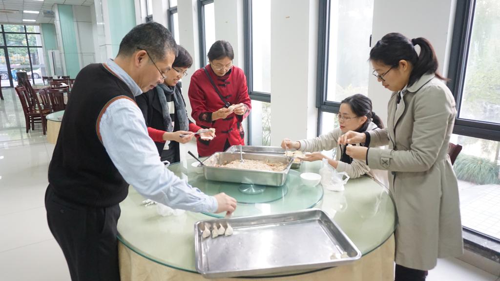 活动开始,分院教职工从百忙中抽身参与到此次活动中来。大家分工合作,拌馅、包饺子忙活不停,大家边包边交流心得,许多老师深藏不露,不仅包的美观而且动作利落,没多久一个个风格各异的饺子便一盘盘摆好等待下锅。