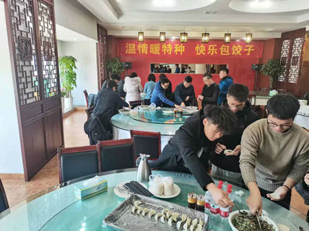 欢声笑语迎新年!1月13日中午,特种分工会举办了“温情暖特种 快乐包饺子”活动。为贯彻防疫防控的要求,加之部分老师有课或有监考任务,包饺子很自然的分批进行。活动还邀请了部分员工代表。