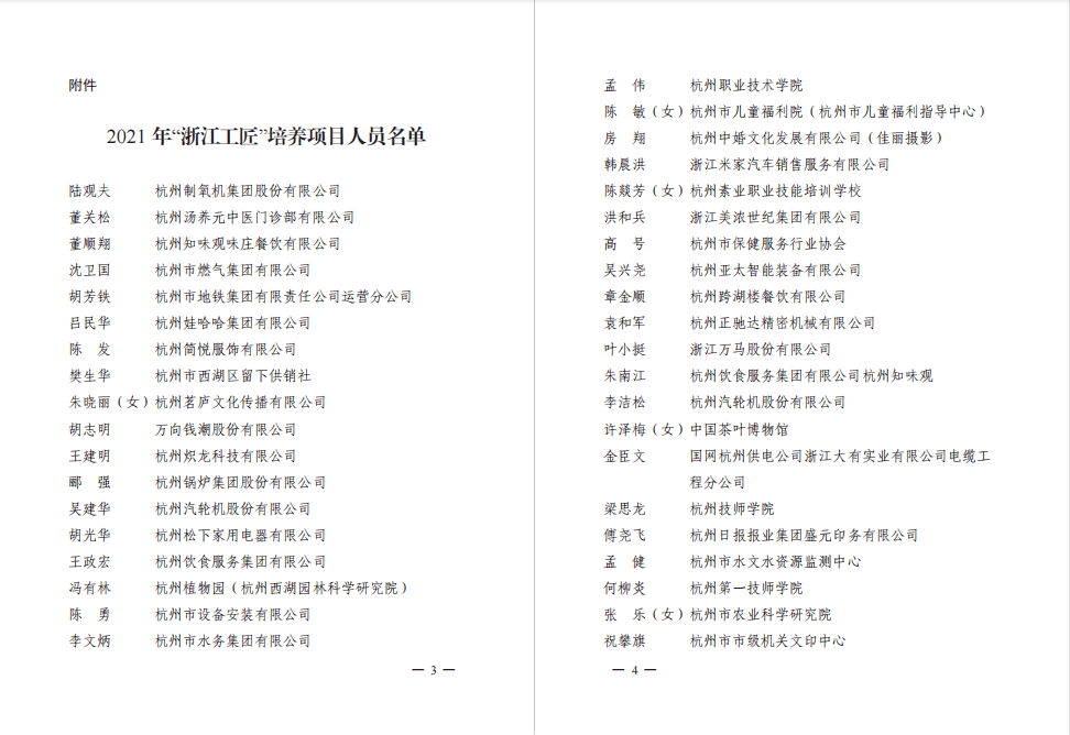 年“浙江工匠”培养项目人员名单,公司孟伟老师榜上有名。