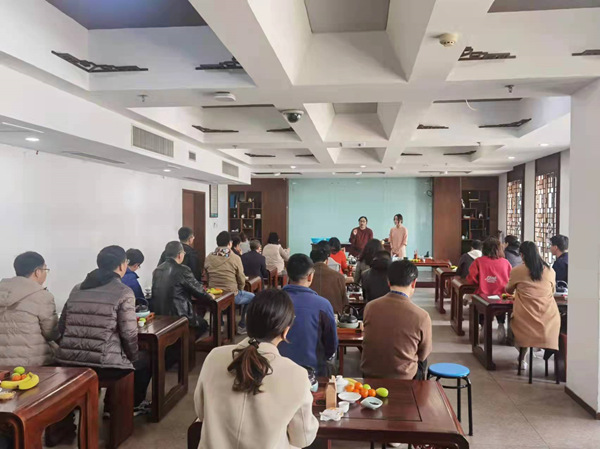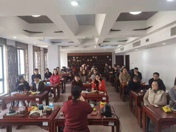备茶、温器、投茶……在淡定优雅的茶艺展示中,品茶缓缓开启。国家高级茶艺师宋华英老师用丰富的茶知识,浅显易懂的语言,从茶艺、礼仪等方面层层深入,讲述了茶的起源发展、茶的种类、茶叶的功能、茶性,茶的正确冲泡方式以及茶桌上的礼仪等知识,现场演示了行礼、洁具、温杯、赏茶、投茶,注水等茶艺……举手投足间散发的优雅,将茶文化的精髓静心、修身、养性表达得淋漓尽致。