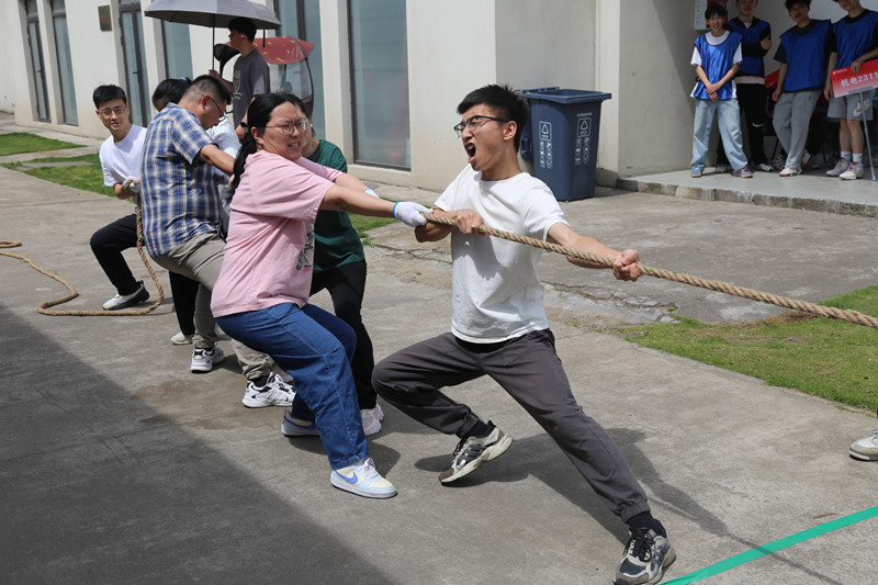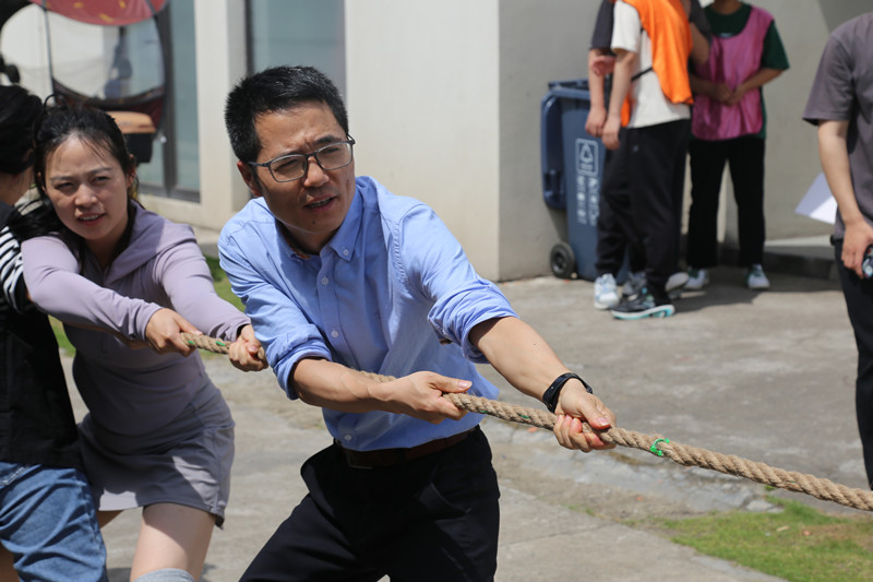 随着裁判员的哨声响起,比赛正式开始!老师们拼劲十足,双手紧握长绳,压低重心,铆足了劲,齐心协力拼命往后拉,红布条在中线两侧来回艰难移动。围观的师生们也为老师们的拼劲所感染,摩拳擦掌恨不得直接上手。欢呼声、呐喊声、加油声、助威声响成一片,激烈的比拼将整个活动推向高潮。经过一番拉锯战,教工第一支部获得第一名。
