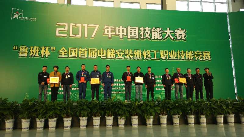 11月13日,由中国机械工业联合会、中国就业培训技术指导中心、中国机械冶金建材工会全国委员会、共青团中央青年发展部主办的2017年中国技能大赛——“鲁班杯”全国首届电梯安装维修工职业技能竞赛中,由电梯工程技术专业负责人、高级技师金新锋带领下的奥的斯电梯学徒班学员张定俊、叶子浩参加了此次比赛,比赛分两个环节:理论部分和实操部分,学徒班的员工充分发挥自己理论专长、实践特长,在比赛中不负众望,分别以个人成绩第一和团体总分第一的战绩,摘取本次总决赛员工组唯一的个人一等奖和团体一等体,同时,张定俊同学被授予全国电梯行业“技能新星”,指导金新锋教师被授予全国“育人标兵”荣誉称号。