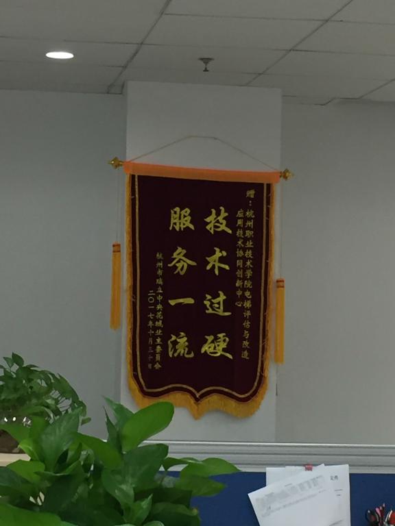 11月6日,公司电梯评估与改造应用技术协同创新中心收到了来自滨江区中央花城业主委员会的感谢锦旗。