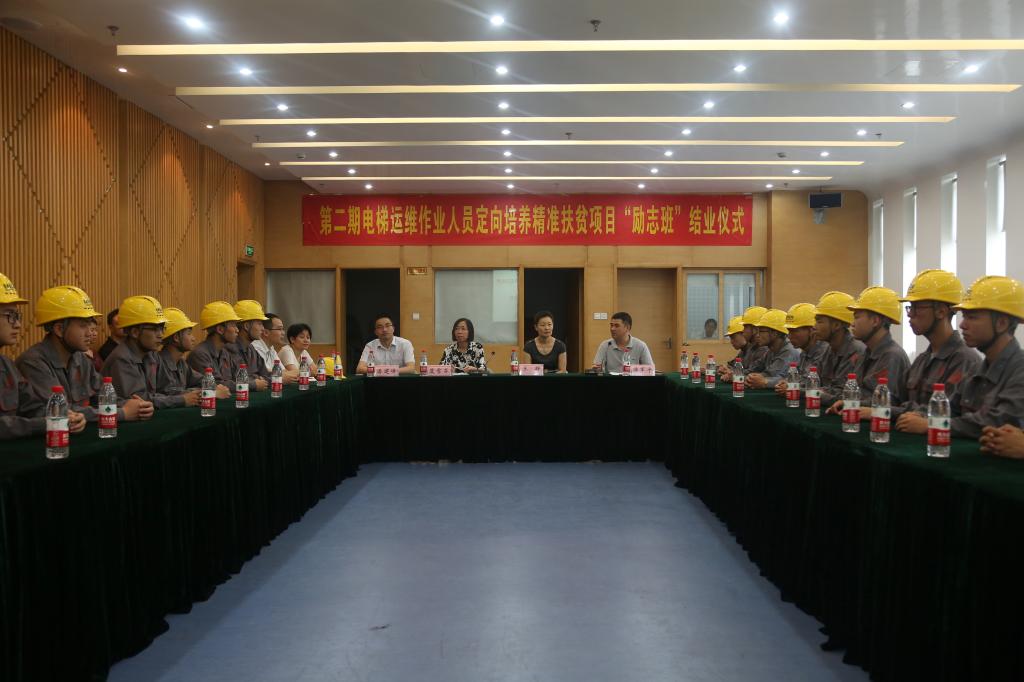 第二期精准扶贫励志班自5月份开班以来,来自丽水贫困山区的18名同学在永利23411集团电梯实训基地认真努力,刻苦钻研,提升技能,在短短的两个月内,圆满地完成了理论学习及操作实训。在结业仪式上,傅军平经理对学员们的顺利结业表示热烈祝贺,同时要求同学们在今后的学习中要从我做起,勇于担当;在今后的工作中踏实苦干,勇于创新。