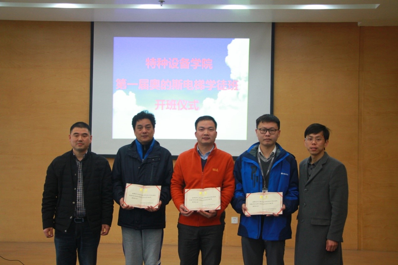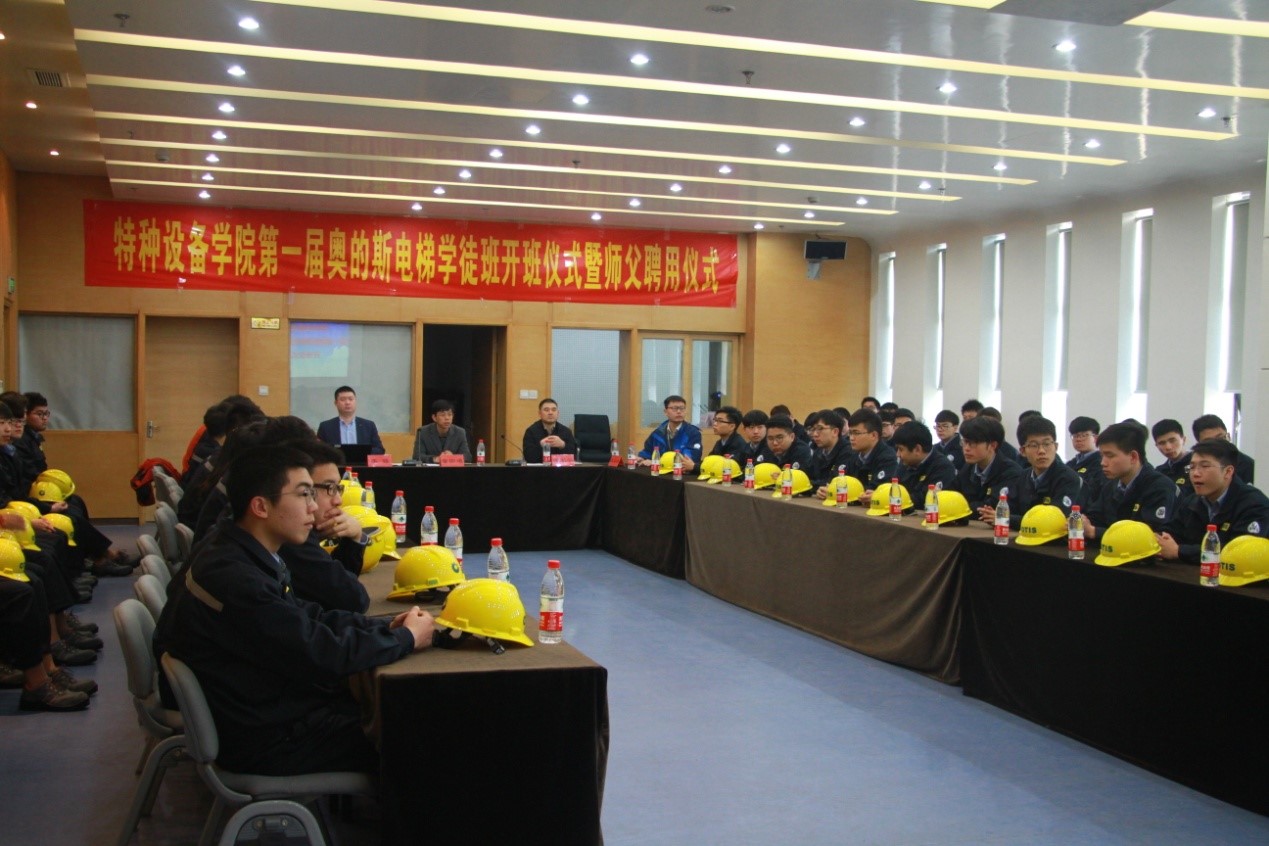 奥的斯电梯公司是全球电梯、自动扶梯和自动人行道的制动商和服务提供商,是行业的龙头企业,从1853年奥的斯发明安全电梯,为全球超过190万台电梯和自动扶梯提供维护保养服务。李强总经理勉励首批学员:“你们已经在大一经过学校的系统基础理论学习,要抓住机会、珍惜难得的学习时光,你们毕业后以“绿带”(中级薪资,相当于其他社招员工工作三年后的水平)等级在奥的斯就业。相比社会招聘,你们是我们华东区的黄埔一期,公司会为你们提供更加宽阔的平台,包括在优先晋升、学历提升赞助学费等”。
