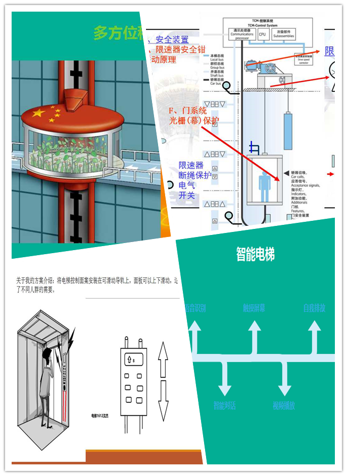 众所周知,当今社会电梯的使用是越来越广泛,但如何设计出更具创意和特色的电梯呢,这就到了考验参赛选手创新精神、无限创意的时刻了。在2408教室,选手们依次上场,意气风发、胸有成竹,通过绘制图纸和制作PPT展示并讲解自己的创意设计。将自己出彩的创意设计展示在观众和评委面前,同时他们思路清晰而有条理,赢得了评委和现场同学的好评。在此次大赛的参赛作品中,绿色、节能、环保等核心理念,最为众多参赛者关注和强调。许多参赛者在设计中使用了太阳能、风能等一些新型再生能源作为电梯动力,让畅想中的未来电梯可以更加环保节能,从而顺应环保型社会的需求。最后电梯专业组的金新锋老师对整场比赛进行了点评,对优秀的创意给予了点赞。鼓励同学们结合专业实际,学习专业技能,力争将来在这一片领域中有所突破。