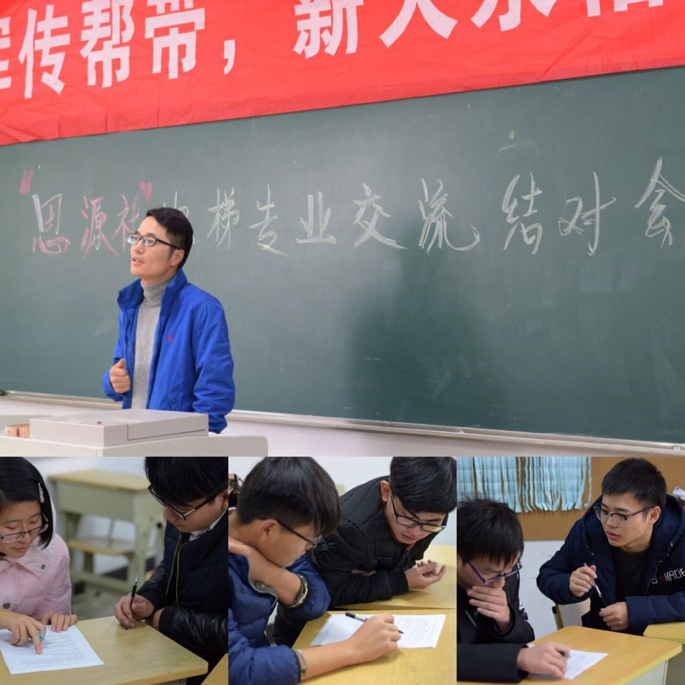 参观结束后,大家在2317教室开展的“思源社”电梯专业交流和结对活动,教科办顾林刚老师就目前学院的发展和电梯专业的学习与同学们进行了交流和分享,希望同学们更快的适应新生阶段的学习和生活,规划好自己的老员工三年生活,找到自己奋斗的目标。之后“思源社”员工与大二入党积极分子与电梯专业员工进行学习帮扶结对,填写了职业生涯调查问卷,交流了彼此的学习经验。