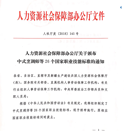 人力资源和社会保障部办公厅(人社厅【2018】145号)正式发文:“根据《中华人民共和国劳动法》有关规定,我部组织制定了中式烹调师等26个国家职业技能标准,现予颁布实施。”公司作为编写组组长单位编制的《电梯安装维修工国家职业技能标准》名列此次首批颁布的标准目录中。