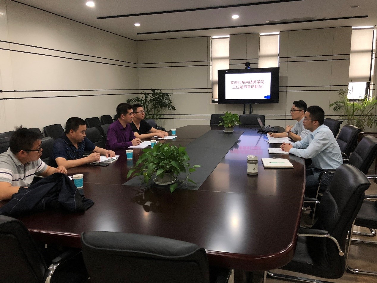 双方在图书馆4楼会议室进行座谈交流。潘建峰首先从办学理念、发展现状、跨界合作等几个方面介绍了公司办学特色与基本情况。随后针对对方此次来访目的,金新锋着重从电梯工程技术专业的专业建设、教学模式、合作办学几个角度进行详细阐述。最后,双方在人才培养方案、课程建设、实训基地建设等几个点进行深入交流,相互借鉴学习。