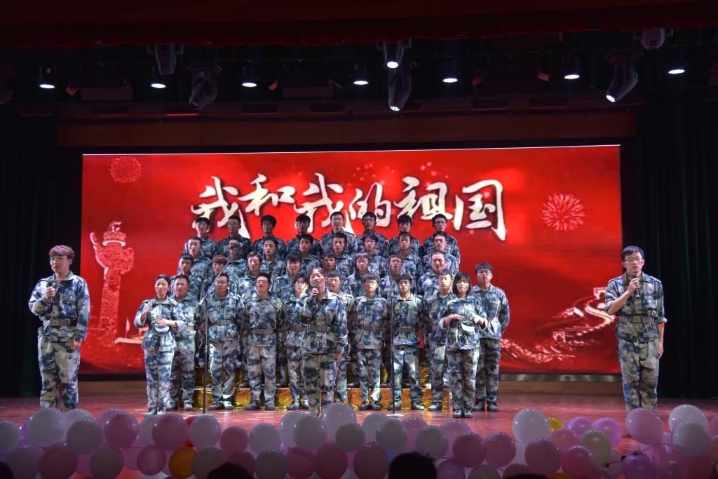 “我和我的祖国”全校师生大合唱比赛现场,师生们通过歌声、朗诵、独唱、舞蹈等形式把自己对祖国的爱“尽情诉说”。