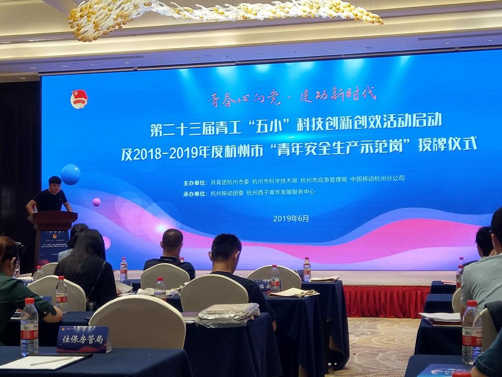 6月27日下午杭州市第二十三届青工“五小”启动仪式及2018-2019年度“青年安全生产示范岗”授牌仪式活动在星都宾馆星都厅顺利举行。