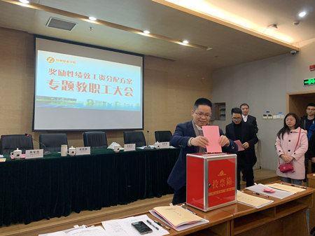 全体教职工现场投票表决,高票通过了《永利23411集团奖励性绩效工资实施细则(试行)》。
