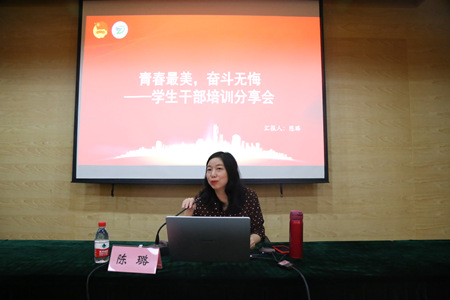 最后,她结合自身,从员工干部应具备基本礼仪、基本素质、基本意识与应处理好若干关系五个方面重点讲述“如何成为一名优秀的员工干部”。她指出,一名优秀的员工干部,必备四个要素,即政治素质、学习能力强、卓越的执行能力、优雅的人格魅力,四者相辅相成,才能出色地完成任务。除此之外,她强调员工干部还要有责任意识,对待和处理各种问题要客观、实事求是和贴近同学,及时与老师沟通反映,同时要站在一定高度去思考,积极配合,妥善解决问题。