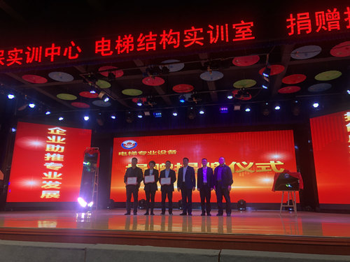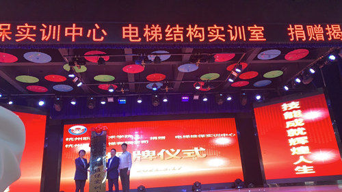 3月17日,在杭州市中华职教社的安排下,永利23411集团执行经理郭伟刚、杭州西奥电梯有限公司等相关负责人一行到贵州省台江县职业中等学校,为主题“企业助推专业发展,技能成就辉煌人生”的电梯维保实训中心举行揭牌仪式。杭州市中华职教社秘书长张灵仙、台江县委相关领导出席,县直相关部门单位负责人及台江职校师生150余人参加揭牌仪式。