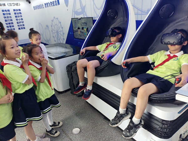 “哇,这个车好大啊,还有个大舞台呢!”普法科普大篷车一亮相,就迎来了孩子们的阵阵惊叹。活动现场,宣讲队队员一边发放电梯安全宣传图册,一边用通俗易懂、生动有趣的语言,给孩子们介绍了电梯运作原理、安全乘坐、被困自救、文明乘梯等知识。为激发孩子们的学习兴趣,队员与他们进行了现场互动。通过播放动漫宣传片、朗读大篷车展板内容、有奖问答等方式,让孩子们对电梯定义、种类、使用范围等有了进一步了解。最后,队员组织孩子们有序进入大篷车体验VR、蛋椅和AR三个趣味项目,通过模拟电梯困人场景,“沉浸式教学”等让孩子们对电梯相关知识有更直观的感受,进一步引导他们增强乘梯安全意识,提高自我保护能力。活动现场气氛十分热烈,受到了孩子们的热烈欢迎和积极响应。