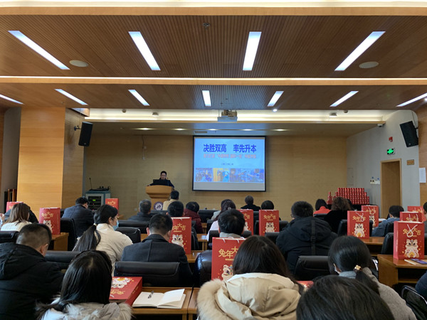 最后,党总支书记、执行经理郭伟刚作了题为“决胜双高 率先升本 奋力打造‘中国特色 国际一流’样板学院”的讲话。他传达了学校新学期中层干部会议上的讲话精神,就2022年度分院工作做了简要通报复盘,分析了学院当前的发展形势,存在的主要短板,梳理了新一年的发展思路,对学院新学期工作进行动员部署。他强调,新的一年,要决胜“双高”:围绕高质量完成“双高”建设等目标,明晰我们的优势、短板、机遇和使命,突破高层次成果、高质量迎接“双高”建设任务终期检查,力争以优秀成绩完成终期考核;新的一年,要率先升本:我们要紧扣“数智杭职•工匠摇篮”发展目标,积极推动产教学研深度融合,争创本科专业,为学校蝶变跃升、跨越式发展交上一份新的高分答卷;新的一年,我们要优化育人环境:持续转作风提效能,营造风清气正的政治环境、廉洁高效的干事环境、和谐向上的人文环境。郭伟刚寄语鼓舞全体教职工,希望把压力化作动力,在新的一年以更加昂扬的面貌,更加扎实的作风把工作完成的更好,奋力推进学院新阶段新发展,为推动学校高质量发展做出新贡献。
