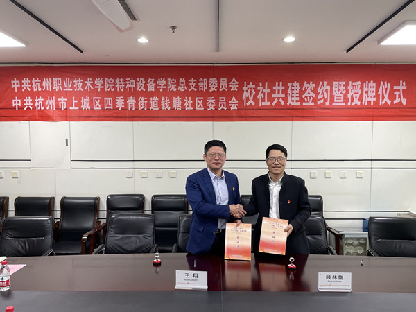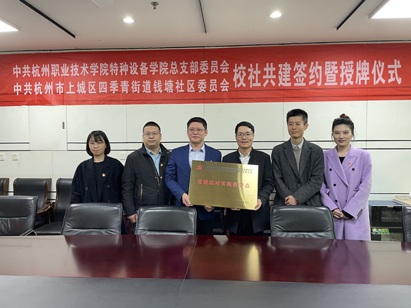 3月30日下午,特种设备公司党总支与钱塘社区党委在图书馆四楼会议室,举行 “校社共建”签约暨授牌仪式。四季青街道钱塘社区党委书记王翔、党务干部王晶,公司党委组织部副部长贝锐莅临结对仪式,特种设备公司党总支副书记顾林刚、各党支部书记,组织员傅淑燕等参加了签约仪式。