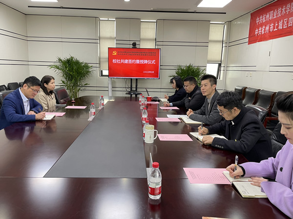 王翔介绍了钱塘社区的基本情况、发展趋势、党建活动开展情况。顾林刚对学院中国特色高水平专业群建设、省级党建工作标杆院系建设、师生党员队伍建设等情况作了详细介绍。然后,双方就如何制定党建共建合作机制、建立党建共建实践平台、组织党建联动服务活动,尤其提到钱塘社区作为上城区唯一亚运场馆所在地,就如何围绕开展迎接亚运、服务亚运、宣传亚运系列志愿活动等方面进行了研讨。