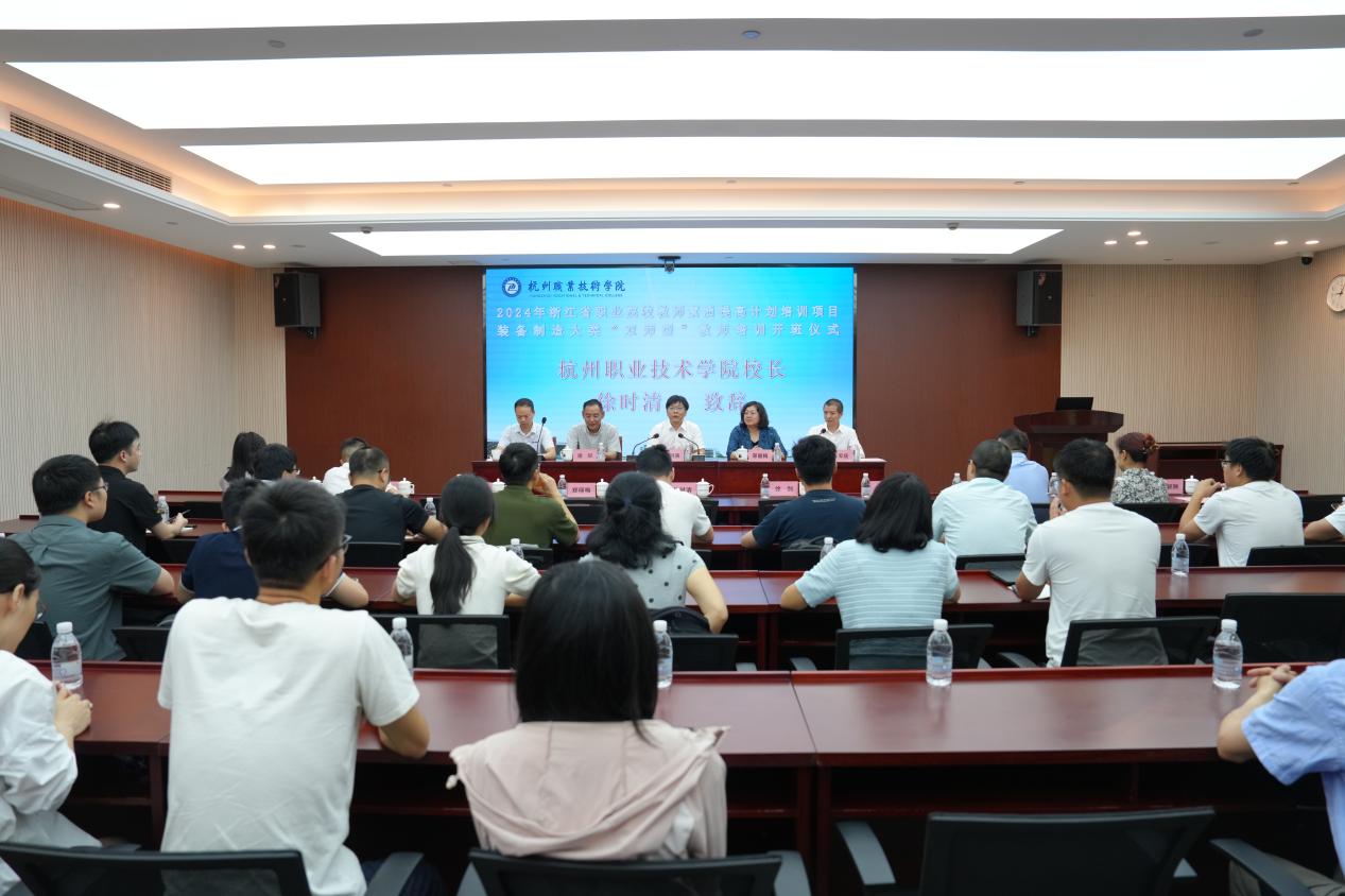 7月16日,由浙江省教育厅教师工作处主办、杭州职业技术学院(以下简称“杭职院”)承办的“2024年浙江省职业院校教师素质提高计划培训项目——装备制造大类“双师型”教师培训”项目开班。出席本次开班仪式的有杭职院董事长徐时清、机械工业教育发展中心副主任郑丽梅,杭职院继续教育学院经理徐剑、永利23411集团副经理陈军统,永利23411集团各专业负责人、骨干教师以及来自全国各地的授课专家翘楚与省内职业院校的专业带头人,共同探讨装备制造行业的新业态、新标准、新技术,深入领会行业对高技术技能人才知识、技能及素养水平的新要求,为“双师型”教师培养树立示范标杆。本次培训时间为7月14日至8月13日,为期30天。