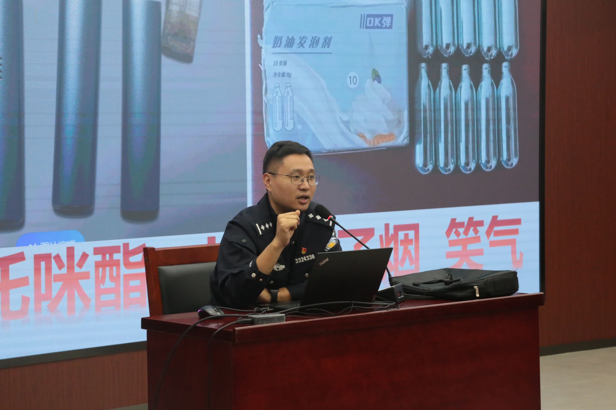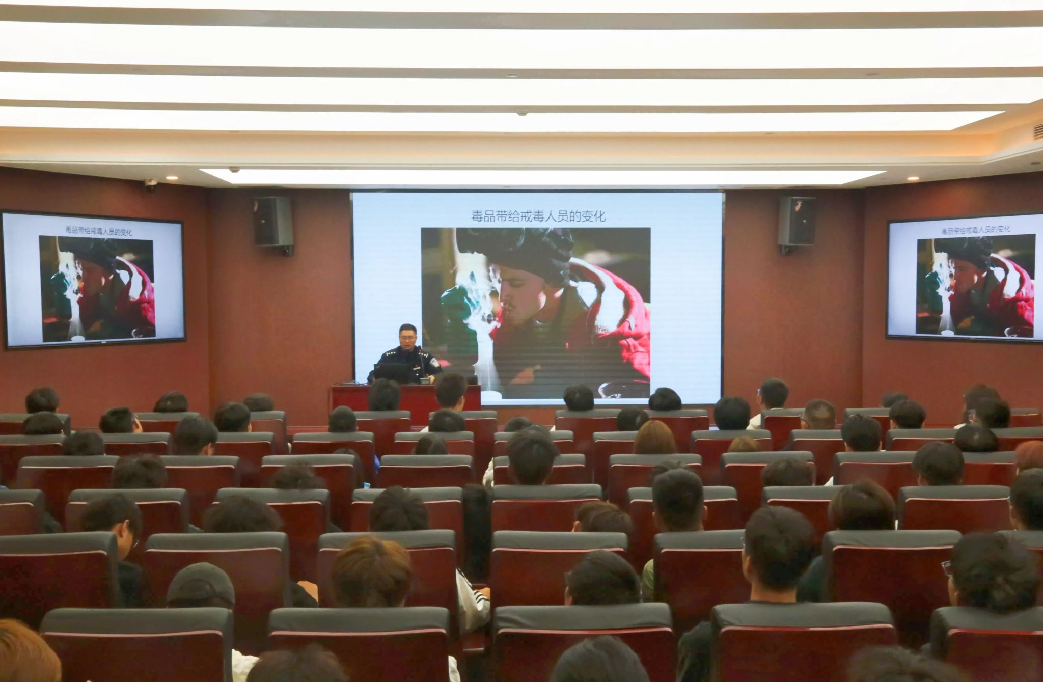 活动开始,高胤警长便向员工们展示了毒品标本的样品,向员工们讲解了毒品的特征与危害,紧接着,高警官采用图文结合及播放视频等形式开展了禁毒宣讲,教员工们如何提高自身识毒、防毒、拒毒能力,引导员工树立正确的人生观、价值观、世界观,筑牢抵制毒品思想防线。会上,高警官还结合戒毒人员真实案例,以案讲法,重点讲解毒品的种类、成瘾原因和如何防范新型毒品等相关知识,以及当前世界禁毒形势,告诫同学们要谨慎交友,努力提升自我保护意识,自觉抵制不良诱惑。