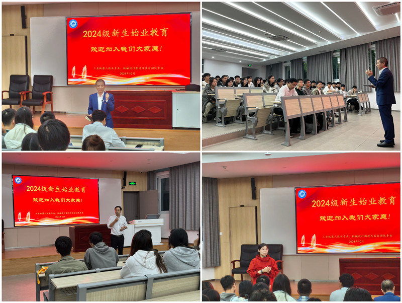 始业教育以爱党爱国、学业修习、校纪校规、生涯规划、自我管理等教育内容为重点。首先,专业教师们详细介绍了各自的教学领域、研究方向及未来职业发展前景,鼓励同学们树立理想,认真规划自己的学习和生活。随后,陈军统从身边的故事引出先有国后有家,他勉励同学们要胸怀祖国,弘扬中国科学家精神,要明确目标、踏实掌握技能,要遵守纪律、涵养优良学风,要心怀感恩,勇担时代使命,响应时代号召,牢记党的教诲,努力成长为堪当民族复兴重任的时代新人。