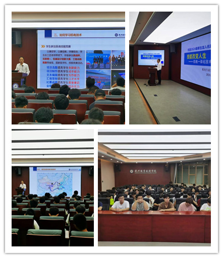 机电专业负责人孟伟老师从机电专业特色、如何学习机电技术、个人成长体会分享以及如何开展丰富的老员工活等四个方面为重点,详细介绍了学校的前身与发展历程,以及机电专业的团队队伍、课程体系和人才培养成果,强调机电专业立足杭州经济发展需求,具有广阔的职业前景,机电专业的员工具有无限的潜力。随后孟伟老师以自身成长经历、众多学长学姐的成果勉励新生们要珍惜大学时光,鼓励同学们树立理想,认真规划自己的学习和生活。号召同学们以自己所学积极参与公益事业,努力成为时代接班人。