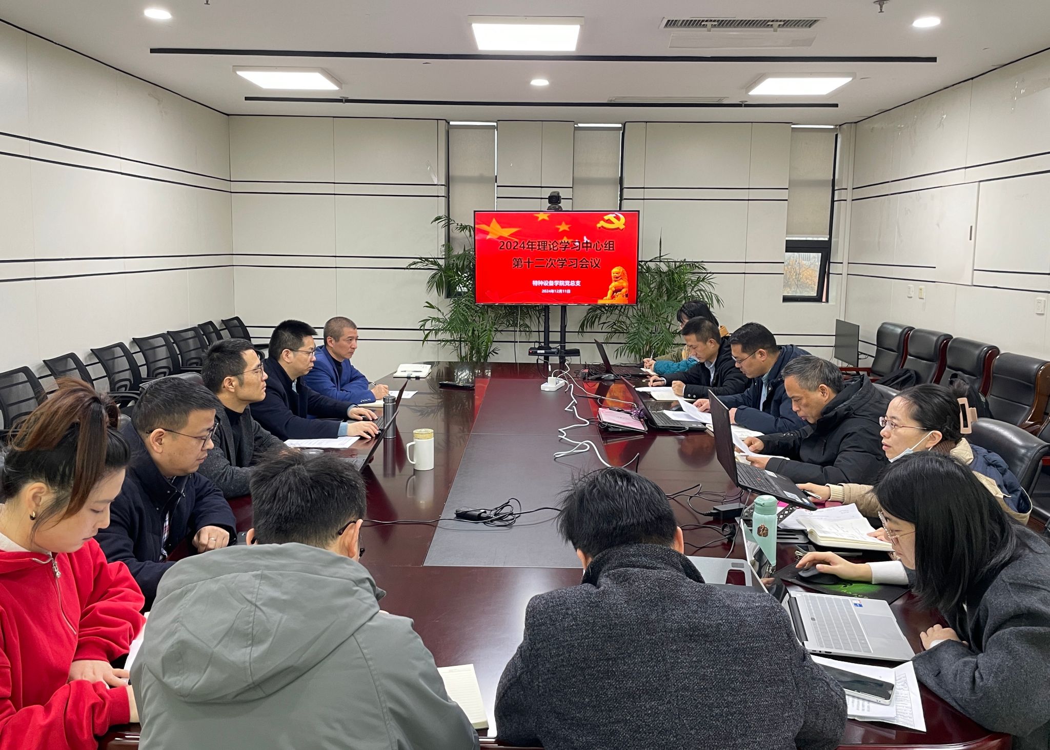 12月11日上午 ,特种设备公司党总支理论学习中心组在图书馆四楼会议室举行2024年第12次集中学习。此次学习由党总支书记郭伟刚主持,学院全体理论学习中心组成员参会。