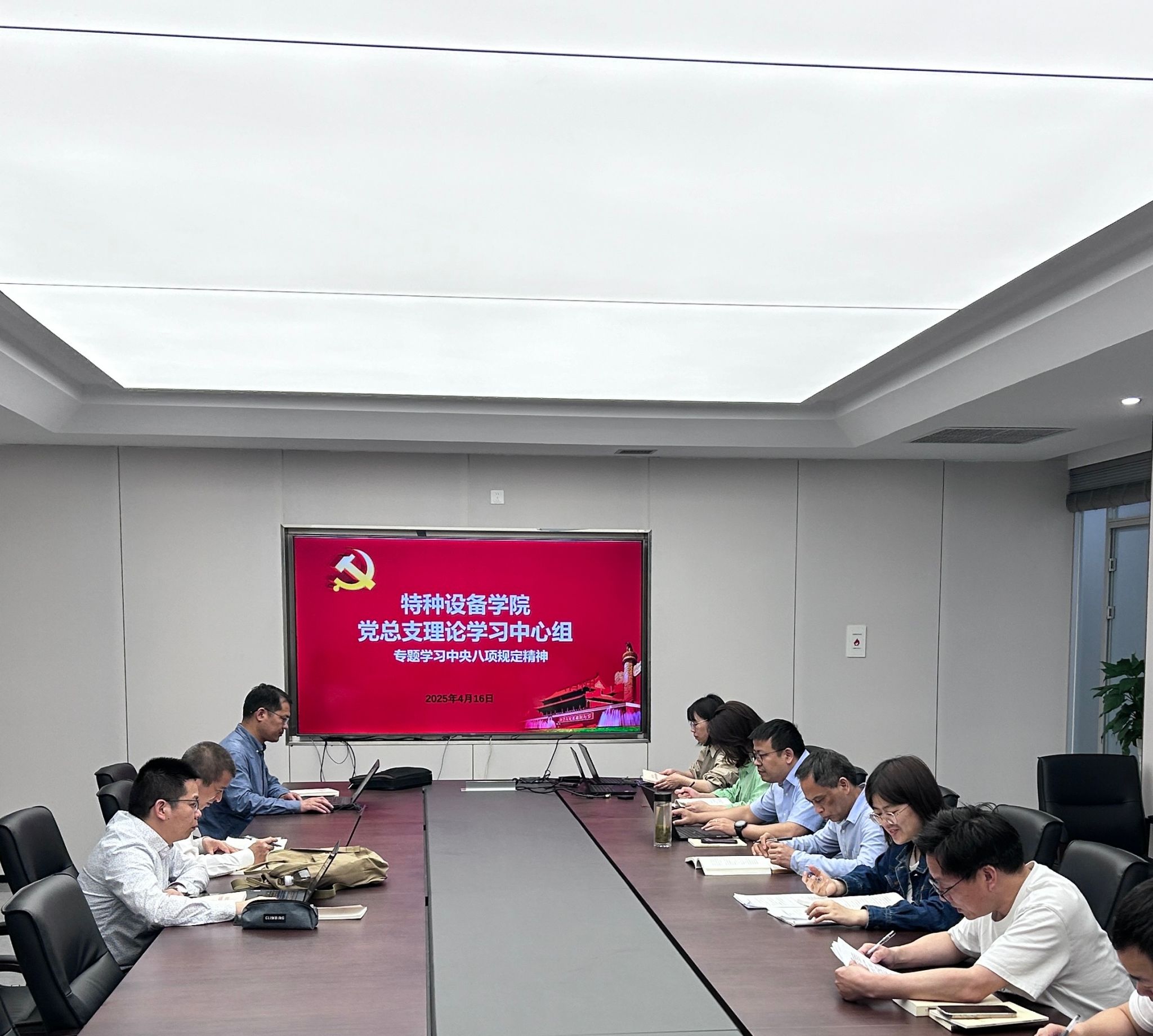 4月16日下午,特种设备公司党总支理论学习中心组召开了2025年第四次专题学习会议,聚焦深入贯彻中央八项规定精神展开研讨交流。会议由党总支书记郭伟刚主持,学院全体中心组成员参加。