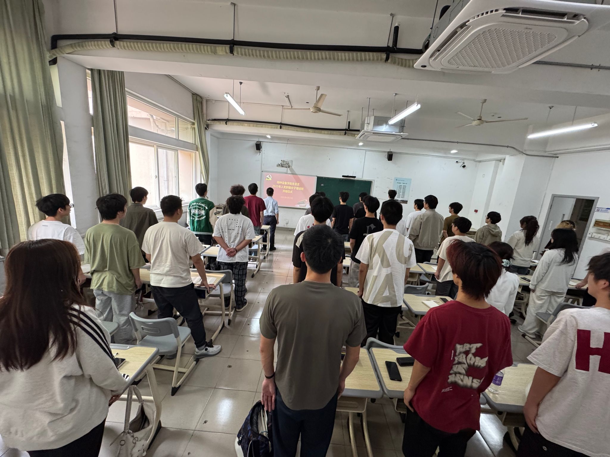 随着庄严激昂的国歌声响起,开班仪式正式启动。雷阳作开班致辞,他指出,成为入党积极分子不仅是一份荣誉,更是一份责任与使命。他要求学员们珍惜身份,深刻认识到“积极分子”是党组织对个人的认可与期待,要明晰自身肩负的使命担当;对标党章,从政治素养、理论学习、道德品质等方面,精准把握共产党员的“硬核标准”;躬身实践,从思想觉悟、专业学习、志愿服务三个维度全面提升自我,以实际行动争取早日加入党组织。同时,雷阳还鼓励学员们在日常学习生活中发挥先锋模范作用,用实际行动影响身边同学。傅淑燕随后围绕培训目标,详细介绍了培训班课程设置与考核要求。