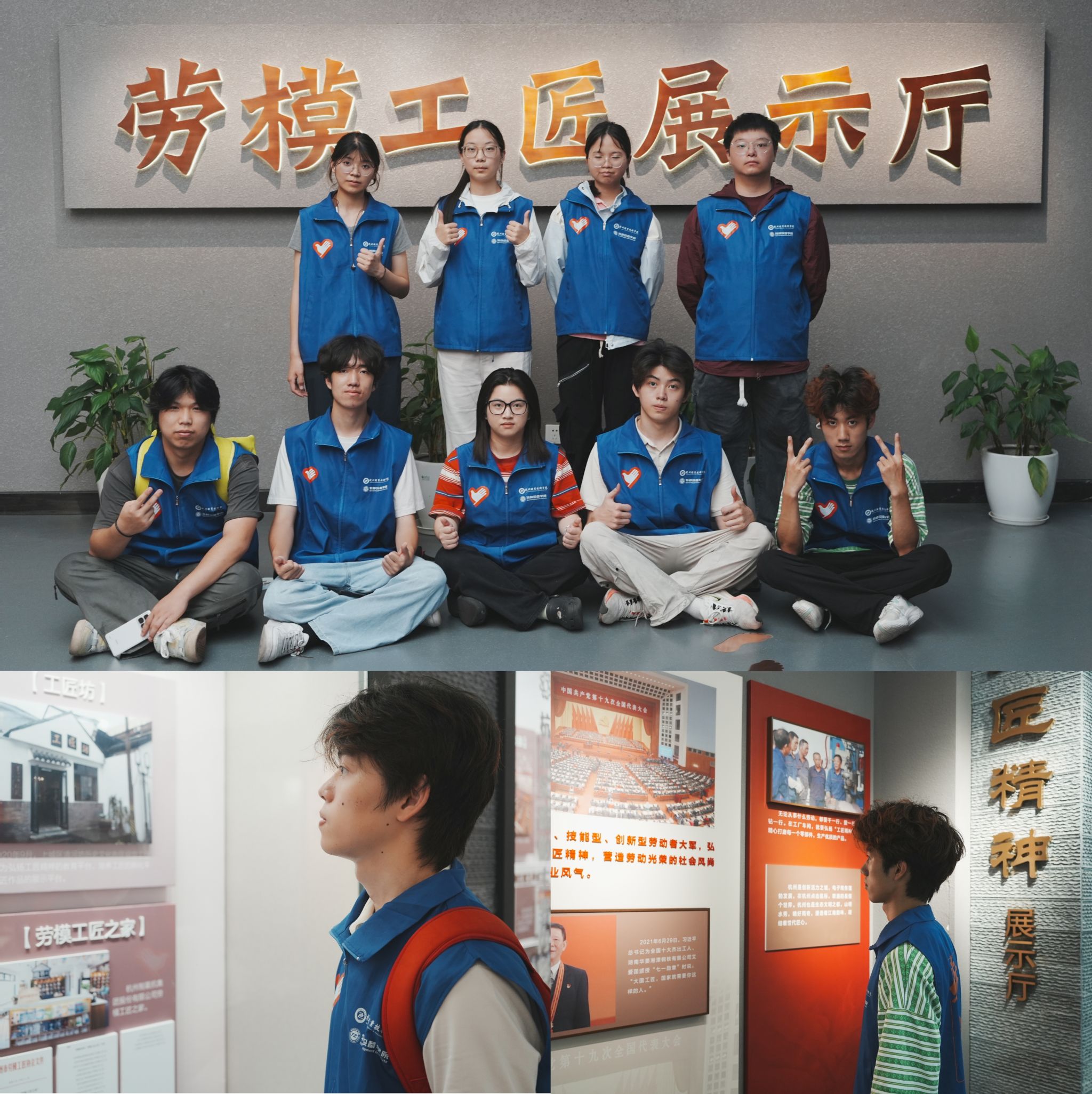 实践队成员首先参观了“工匠精神展示厅”。展览通过丰富的历史资料和实物展示,系统呈现了工匠精神在不同时期的传承与发展。同学们认真参观,深入了解工匠群体的历史贡献及其在经济社会发展中的重要作用。随后,实践队来到“劳模工匠展示厅”。展厅集中展示了各行业劳模工匠的先进事迹,生动诠释了工匠精神的深刻内涵。同学们通过观摩学习,深刻感受到工匠精神所蕴含的专注、严谨、创新与奉献的品质。