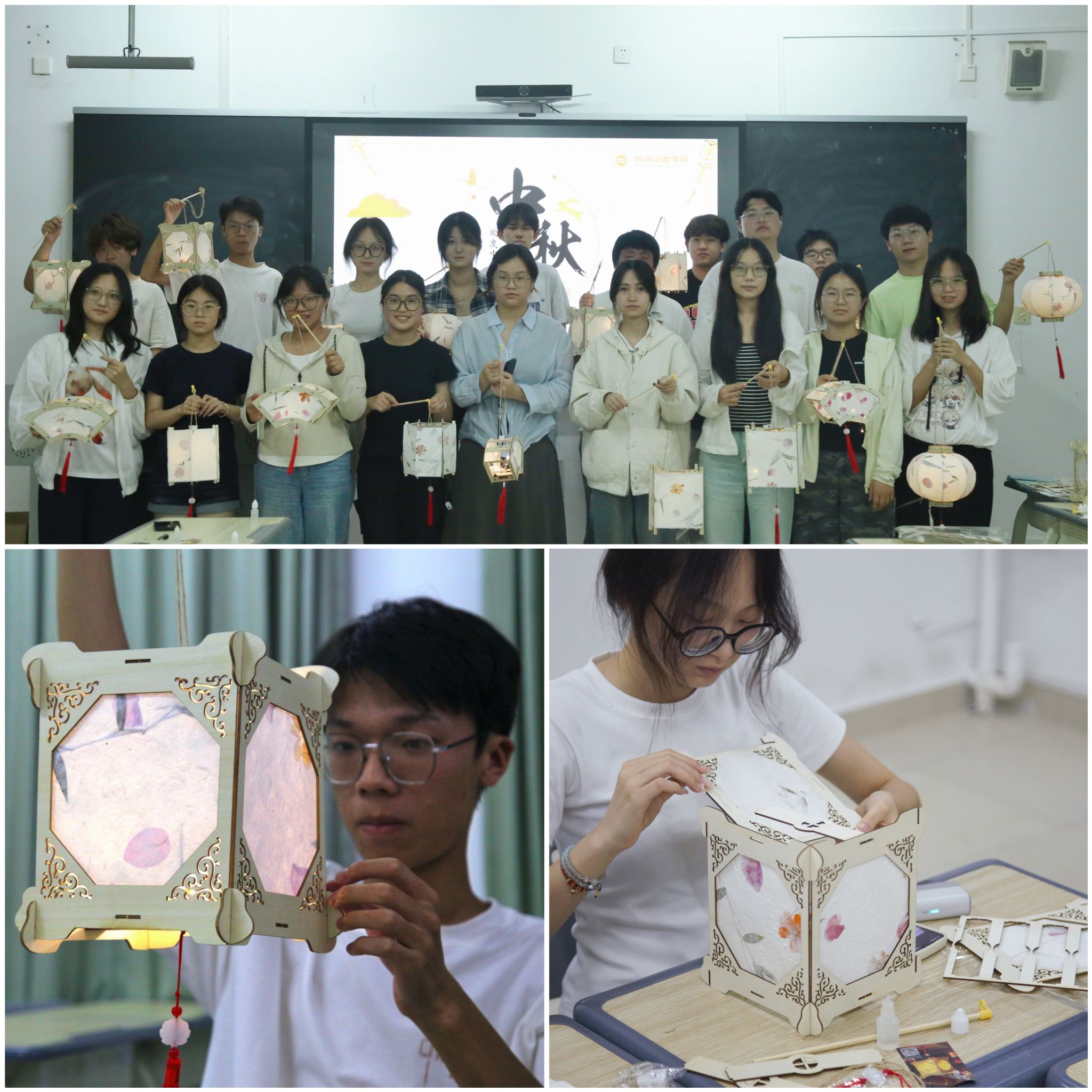 月满中秋,灯火传情。为弘扬中华优秀传统文化,营造温馨祥和的节日氛围,9月29日晚,永利23411集团在6234教室组织开展“指尖映月,点亮中秋”非遗灯笼制作活动,以传统手工艺为载体,为同学们送上节日祝福。