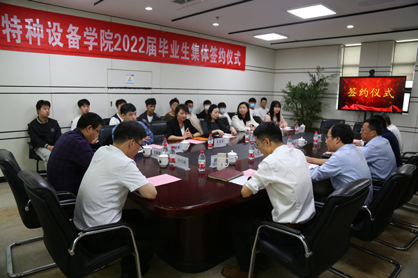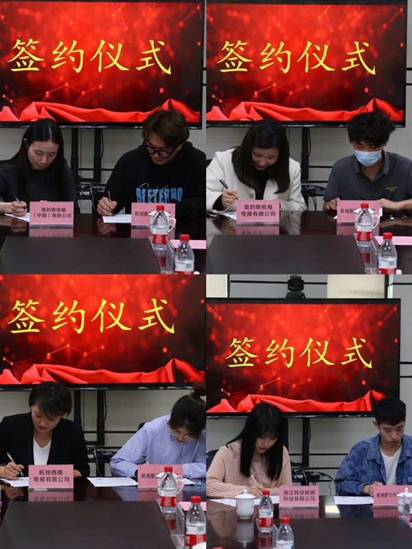 为扎实做好疫情防控常态化背景下2022届毕业生就业工作,引导毕业生扎根重要行业关键领域,加强学院和用人单位的紧密联系,提升毕业生对用人单位的认同感和归属感,5月10日上午9点,永利23411集团2022届毕业生就业集体签约仪式在图书馆4楼会议室举行,公司党委副书记陈泉淼、学工部部长江平、奥的斯电梯(中国)有限公司人事部经理陈桔娜、奥的斯机电电梯有限公司人事部经理居娜、杭州西奥电梯有限公司人事部经理王玉云、浙江特安检测科技有限公司人事部经理丁艳受邀参加,分公司党总支书记、执行经理郭伟刚,党总支副书记顾林刚、副经理陈军统、电梯专业负责人金新锋、学工办主任孙红林及16位毕业生代表参加了签约仪式。会议由顾林刚主持。