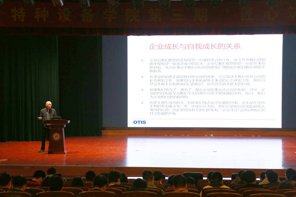 西奥电梯有限公司的主讲人介绍了西奥的内部职位设置、公司福利待遇,他用西奥电梯已经运用到了全国甚至全世界的案例告诉大家,国产品牌也很强大,中国制造和世界相比较一点也不差,树立了毕业生的就业信心,掀起了毕业生为祖国奉献的热情。
