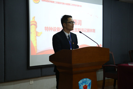 开幕式在雄壮的中华人民共和国国歌声中拉开帷幕。顾林刚发表了热情洋溢的开幕词。他首先对大会的召开表示热烈祝贺,向长期以来关心和支持公司共青团工作的校团委表示衷心的感谢!并向参加大会的各位代表和团员青年致以诚挚的问候。他充分肯定上一届团总支和员工会所取得的成绩,同时,他代表特种党总支向新一届团总支、员工会提出了三点要求:一、加强思想引领,切实增强思想引领的针对性和有效性。二、提高创新能力和水平,切实服务好青年员工成长成才。三、加强队伍建设,切实打造具有强大凝聚力的员工会组织。最后他希望学院广大团员青年要不忘初心、胸怀祖国,做志存高远的健康青年;要牢记使命、永葆青春,做求真务实的健康青年;要锐意进取、永立潮头,做砥砺奋斗的健康青年。