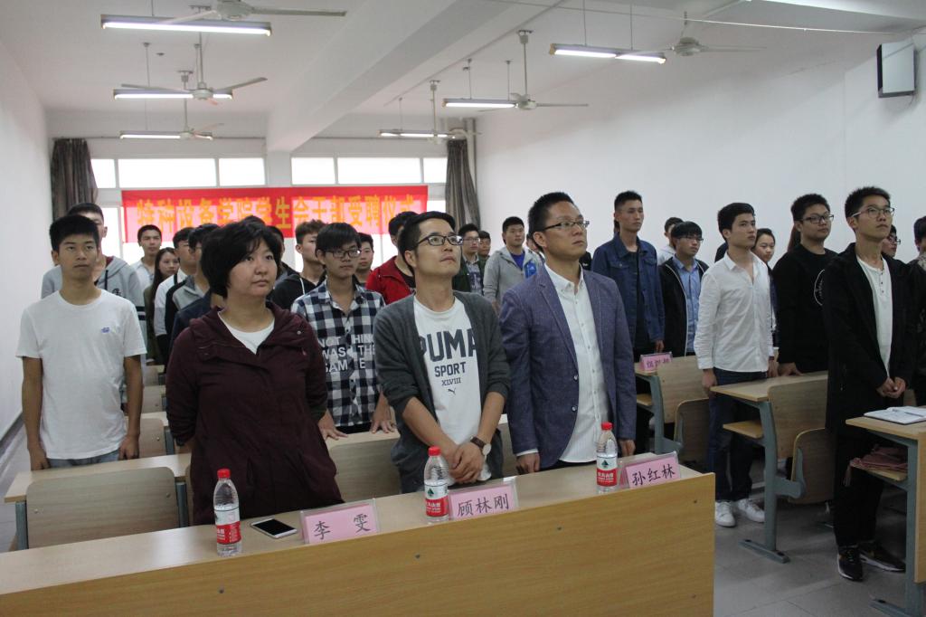 本次大会第一个环节是奏唱《中国共产主义青年团团歌》,在激昂的音乐声中,每一位老师和同学都精神饱满、姿态端正,授聘仪式拉开了序幕。在员工会秘书长宣读完员工会成员名单后,员工会各部门成员分别上台受聘,佩挂工作证。接着由部长代表和干事代表上台进行发言,代表各部长和干事表达了今后工作的方向和目标。从所有干部干事们灿烂的笑容中,可以看出他们都十分高兴能够加入永利23411集团员工会这个大家庭,同时也对接下来的工作充满信心与期待。接着由员工会主席带领所有成员进行宣誓,坚定的声音,宏亮有力地回旋在大家的耳畔。大会最后由孙红林老师进行总结发言,他首先对所有加入员工会的干部和干事在工作能力、工作态度、积极性等方面作出了肯定,他相信大家必定能成为永利23411集团员工会的中流砥柱,精英团队。同时,对所有成员也提出了三点要求和期望:第一,首学习、重工作;第二,明分工、互协作。第三,守纪律、讲奉献。希望同学们在这个崭新的学院,崭新的团队中共同进步。