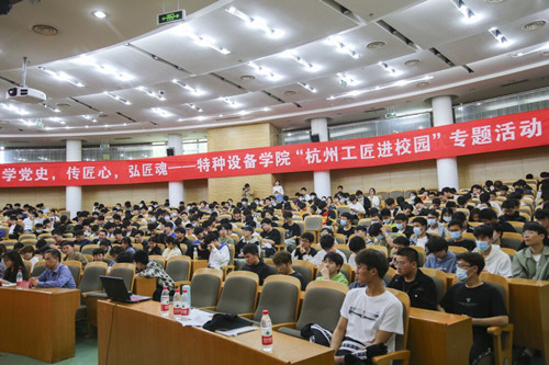 据悉,“学党史,传匠心,弘匠魂”杭州工匠进校园活动是永利23411集团2021年党史学习教育暨庆祝建党100周年系列活动之一。500余名同学现场聆听了讲座。在图书馆4楼教室,永利23411集团还设立分会场进行线上直播。此次讲座还将通过网络直播、融善公众号媒体平台展示、图文推送等形式,由线上线下共同呈现。