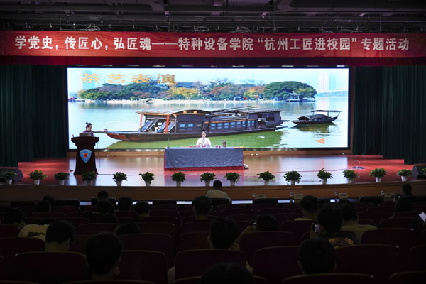 活动邀请了全国技术能手、浙江省“百千万”高技能领军人才、杭州市五一劳动奖章获得者、杭州工匠——杨洋进行宣讲。杨洋也是全国双金奖茶艺师、西湖龙井“十八棵”御茶形象代言人、浙江大学特聘茶艺教练。她以“激情点燃梦想,技能改变人生”为题,例举了自己及身边的技术能手为精进技艺奋力拼搏的故事,在场的同学们为之感叹。