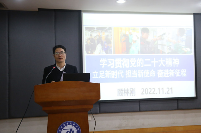 顾林刚为学员作题为“立足新时代,担当新使命,奋进新征程”的课程第一讲。他首先宣讲党的二十大精神,从“大会主题”“党的中心任务”“中国式现代化”等关键词入手进行解读,随后他结合公司发展特色、双高攻坚任务鼓励学员们立足员工干部身份、基于实际勇挑重担。最后,他提出了员工干部的新使命,要求大家提高政治素质、业务素质、心理素质和团队素质,把工作落到实处。顾林刚的讲授资料翔实,生动幽默,教室里掌声不断,同学们纷纷表示受益匪浅,感触颇深。