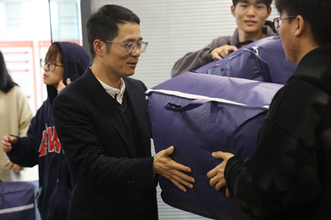 活动现场,顾林刚将学院的关怀和温暖化作一条条厚实的冬被送到思源社成员手中,并对同学们寄予了鼓励和希望,希望同学们能对学习充满努力,对生活充满向往,对人生充满信心。同学们接过冬被,露出了真诚的笑容。